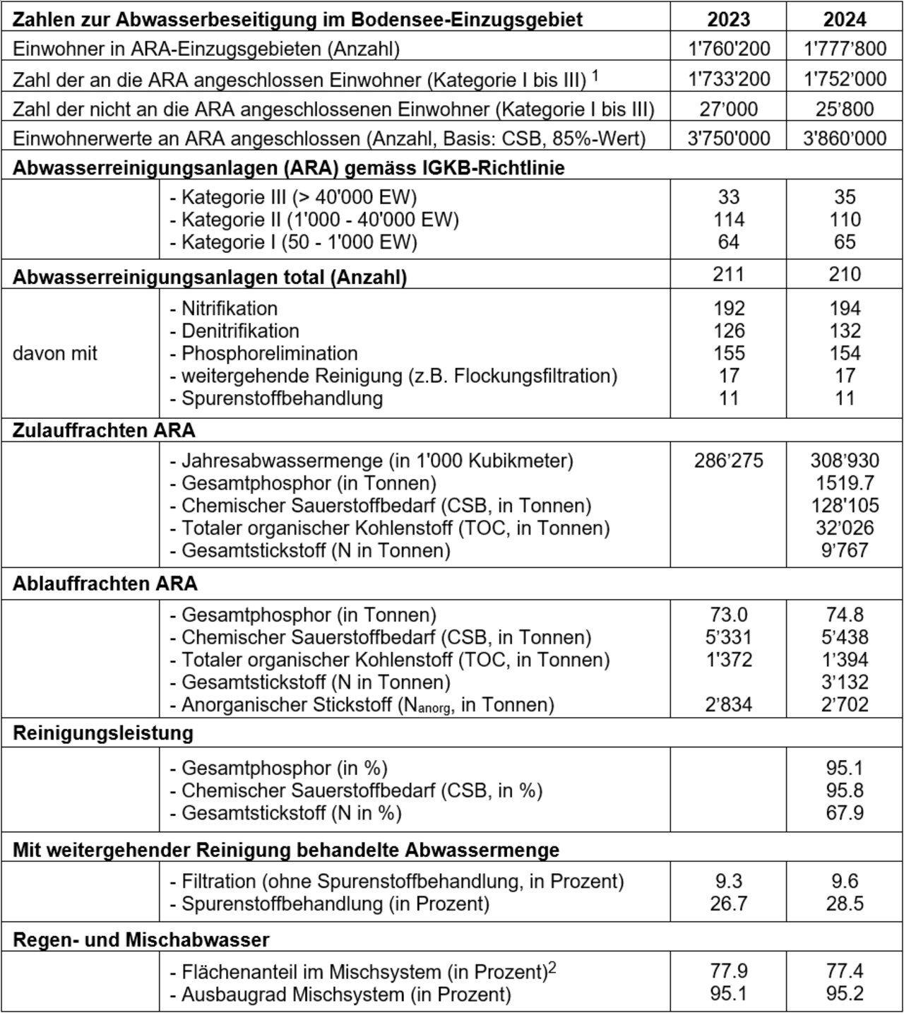 ¹ Abwasser von ca. weiteren 82'600 Einwohnern geht zu Anlagen ausserhalb des Bodensee-Einzugsgebiets